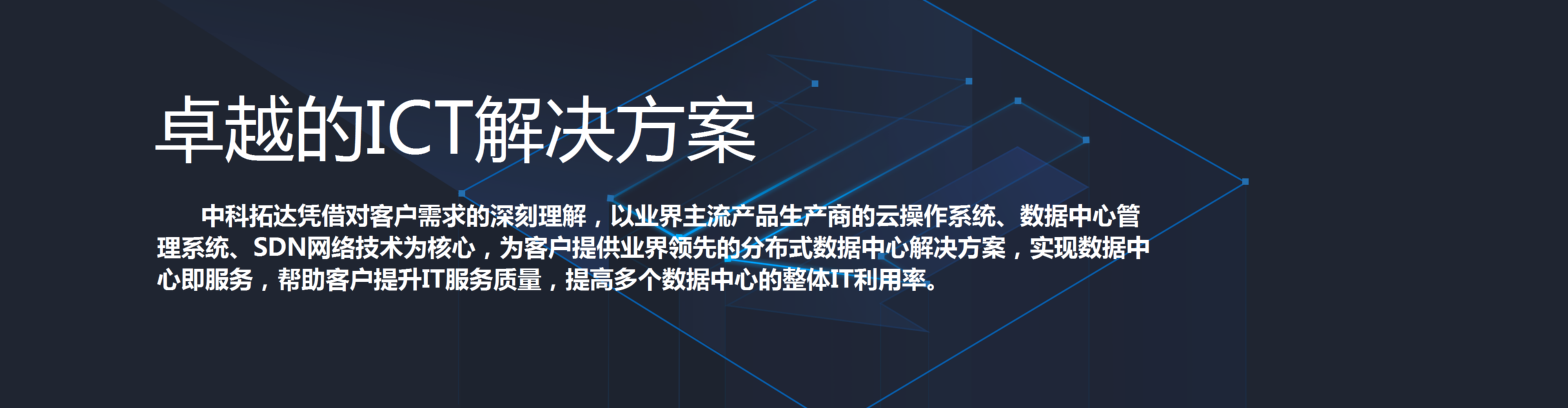 北京中科拓達科技有限公司(以下簡稱“中科拓達”)成立于2012年10月,注冊資金2000萬。公司定位于為行業用戶信息化業務提供產品、研發及服務的綜合解決方案,是專業從事信息化系統集成的整體項目建設、項目實施、運行維護、故障處理、咨詢培訓等內容的北京市高新技術企業。